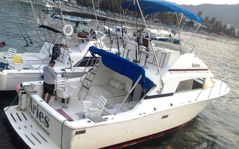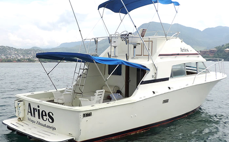Aries is a 35ft Bertram Boat with twin engines diesel motors up to 8 people with 7 fishing lines + a down regal to take you out for Deep Sea Fishing or Small Game Fishing as well for a pleasant cruising ride along Ixtapa and Zihuatanejo bay to watch the sunset or combine fishing and snorkeling you decide we make it happen.
